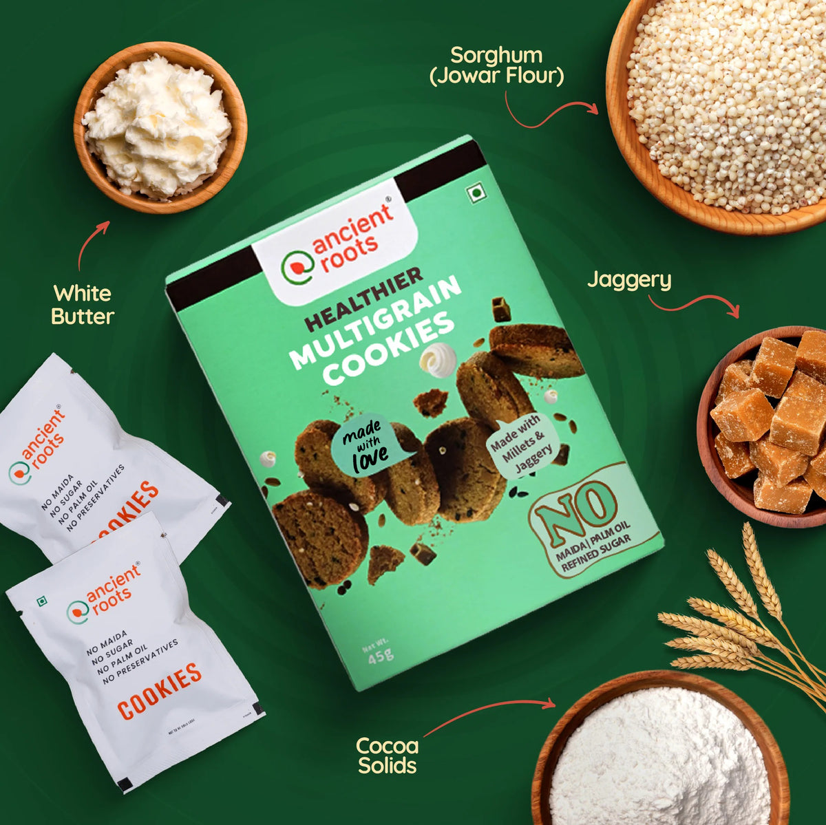 At Ancient Roots, we believe in clean ingredients, good fats, and promoting mindful eating. Our nutrient-dense foods, made from natural ingredients like millets, jaggery, wheat, oats, seeds, and nuts and offer a better alternative to the unhealthy but convenient food options readily available.