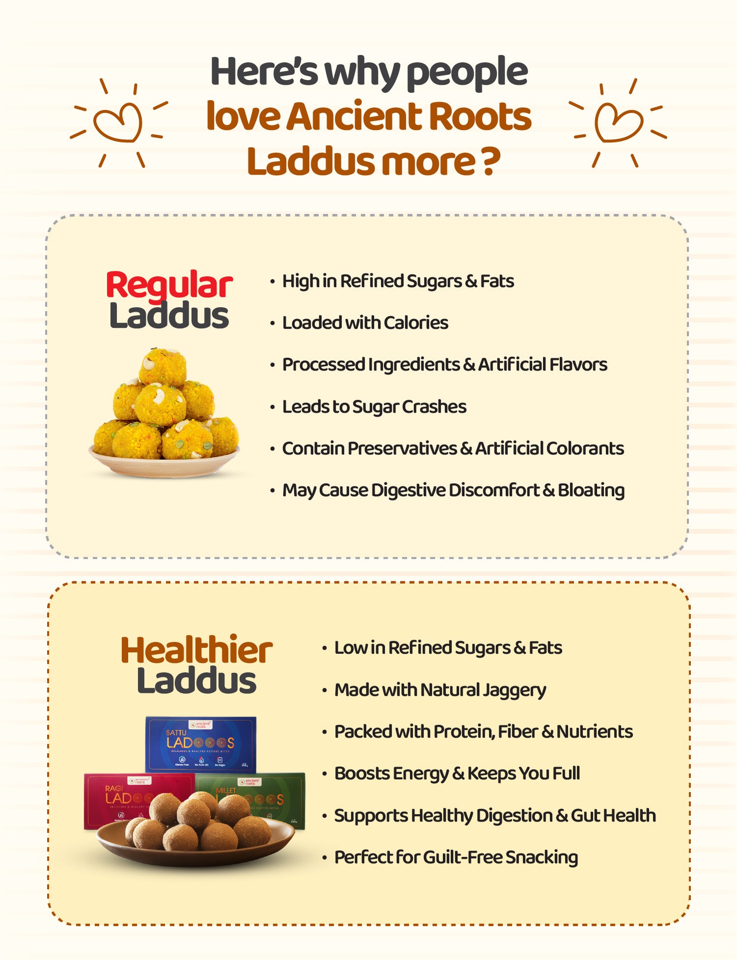 Ancient Roots Ladoos offer several health benefits due to their wholesome ingredients:
